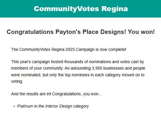 Payton’s Place Designs voted BEST for Regina, Saskatchewan Interior Design 2025